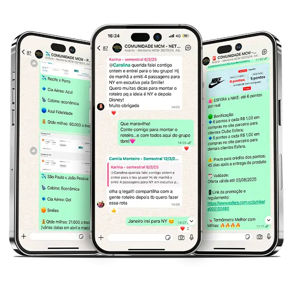 Ao se inscrever, você terá acesso direto e imediato a 3 grupos exclusivos da Comunidade Melhor com Milhas por 1 ano: